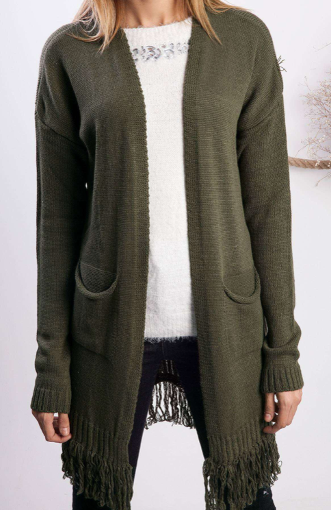 Basic Long Sleeve Cardigan Khaki-Black